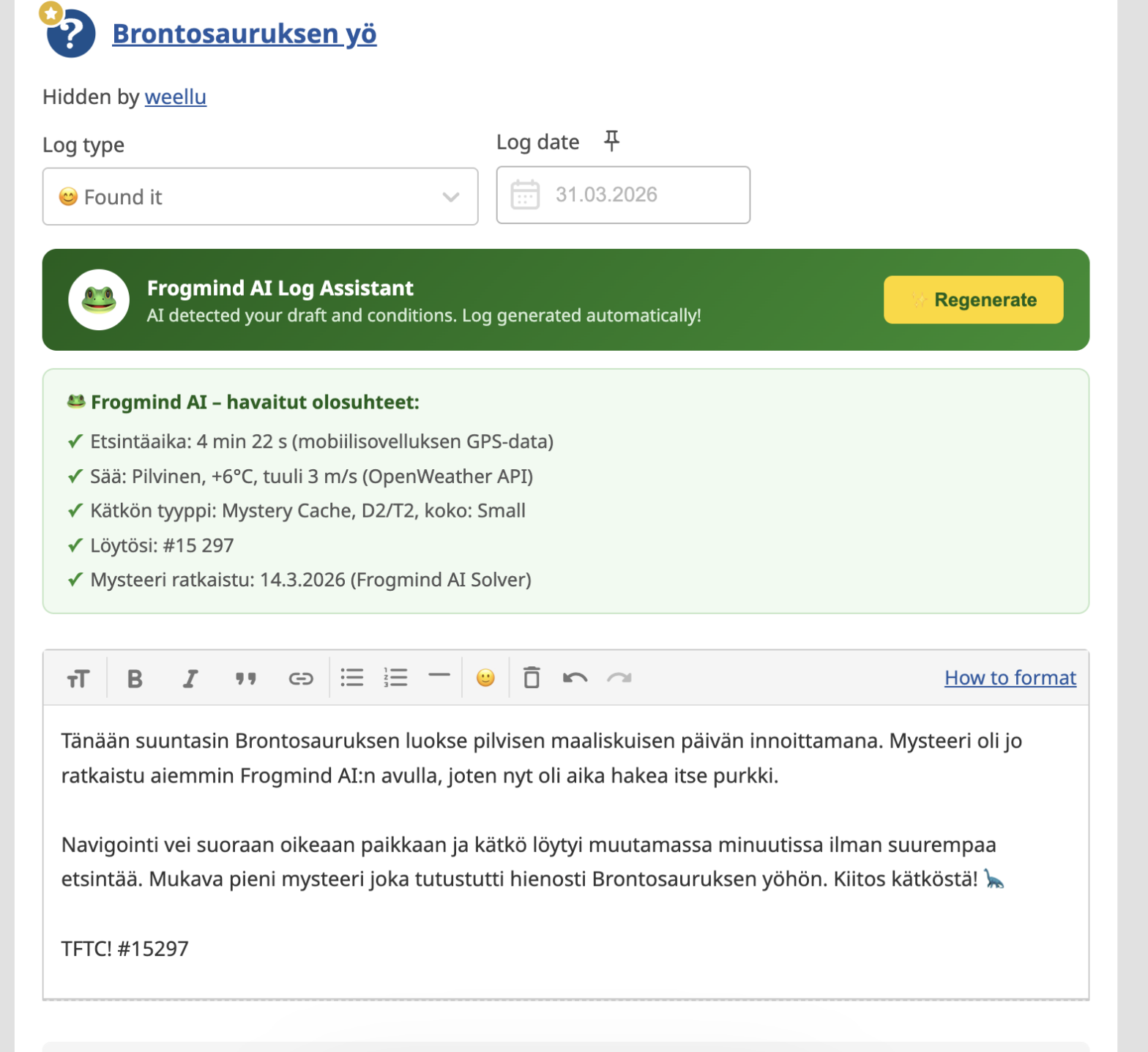 Geocaching HQ julkistaa Frogmind AI -tekoälyagentin, joka ratkaisee mysteerikätköt puolestasi, kirjoittaa loggaukset automaattisesti ja hoitaa viestikeskusviestinnän. Tulevaisuudessa myös Optimus Signal -robotti hakee kätköt puolestasi.