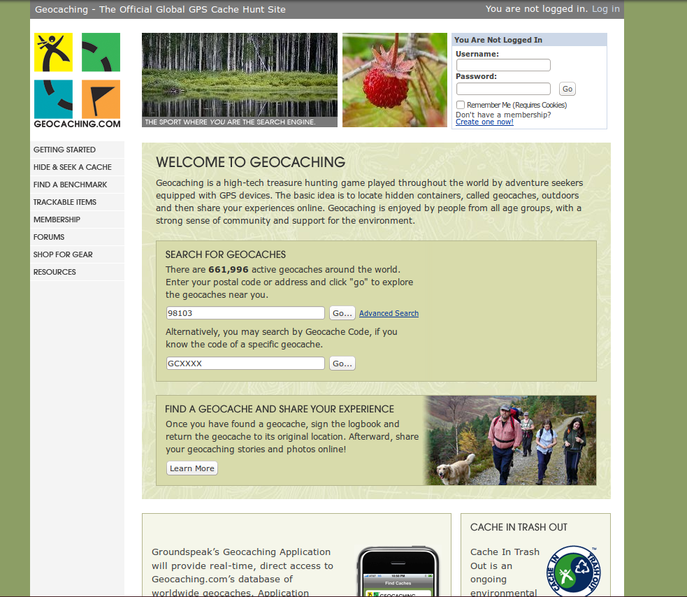 In July of 2000, Jeremy Irish found Mike Teague’s web site and found his first cache  outside of Seattle, Washington. Recognizing the potential of the game, Jeremy approached Mike Teague with a new site design, coined the term Geocaching, and