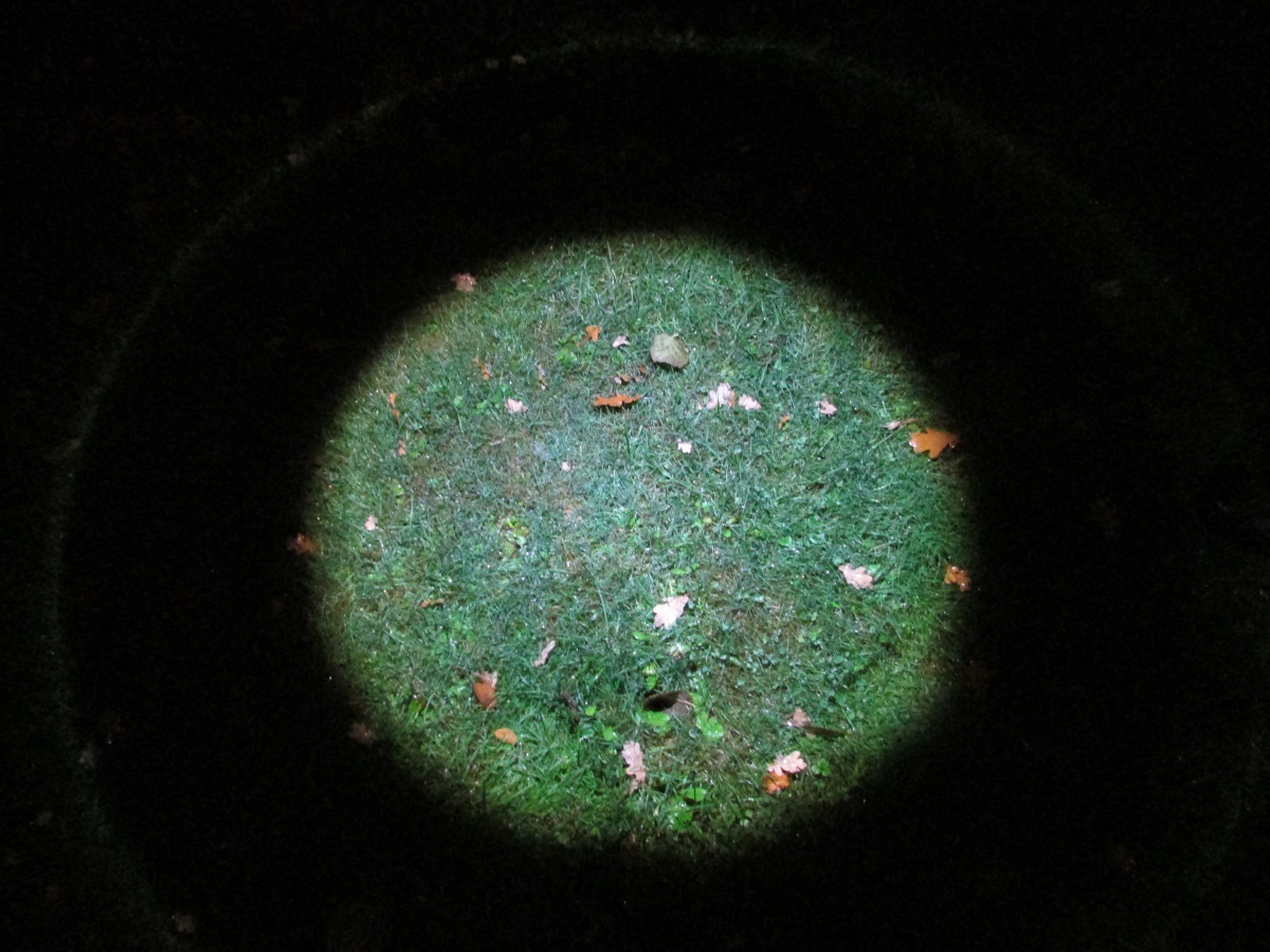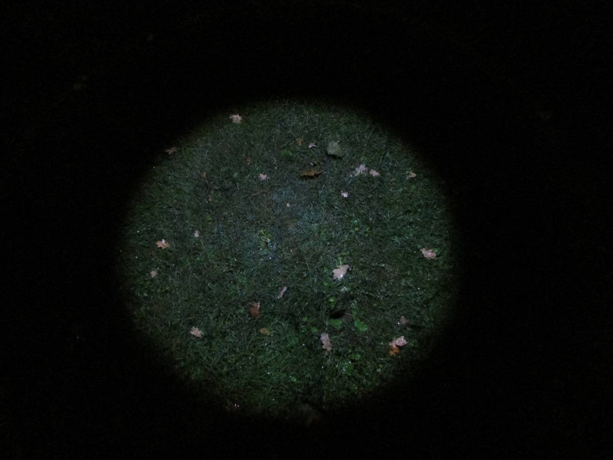 Valokuviossa on myös toivomisen varaa. Kun fokus on levitetty laajalle näkyy lampun valokeilan ympärillä selkeä halo. Myös kun valokeila on tiukasti fokusoitu on keila käytännössä “ledien muotoinen”. Eli valokeila on neliö, joka koostuu pienemmistä neliöistä. Lumenien mittaamiseen minulla ei ole välineistöä, mutta ehkäpä maastokuvat puhuvat puolestaan (kuvat 6-8). Se on kuitenkin pakko todeta, että ainakin oman wanhan Fenix TK20:n lamppu peittoaa mennen tullen, joten valotehoa on ainakin enemmän kuin 150 lumenia. Veikkaisin, että ainakin 200-300 lumenin välillä liikutaan, jos ei ihan luvattuun 300 lumeniin päästä. Vertailun vuoksi todetaan vielä, että samaan aikaan tilaamani 1000 lumenin otsalampun teho ei ole juurikaan tätä 300 lumenin taskulamppua kirkkaampi, joten siinä mielessä voisin hyvinkin uskoa, että taskulampusta irtoaa luvatut valotehot. Kuvissa 9-13 on käytetty eri moodeja ja vertailun vuoksi myös TK20:n keilasta kuva. Kuten kuvista huomataan on kiinalampun valo sinisempää kuin TK20:n. TK20 tosin on alunperinkin valoltaan keltaisempi ja vielä lamppu on vanhetessaan muuttunut entistä keltaisemmaksi valoltaan.