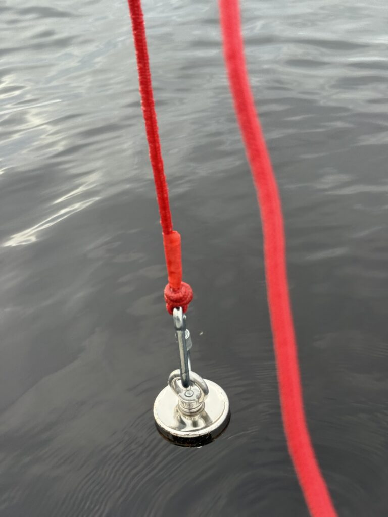 Hyvin nopeasti kävi ilmi, että homma tulisi olemaan neula heinäsuovassa -tyyppistä hakuammuntaa. Mitään tuntumaa siihen, mitkä kohdat vedenpohjasta oli magneetilla koluttu, ei saatu. Mukana ei ollut ankkuria niin vene lipui aaltojen viemänä ja paikkaa vaihdettiin tiheään. Jossakin logissa mainittu konsti virittää kahdesta pullosta merkkinaru voisi auttaa vähän hahmottamaan mistä olisi katsottu, mutta ei sekään kyllä hirmuisesti auttaisi.
