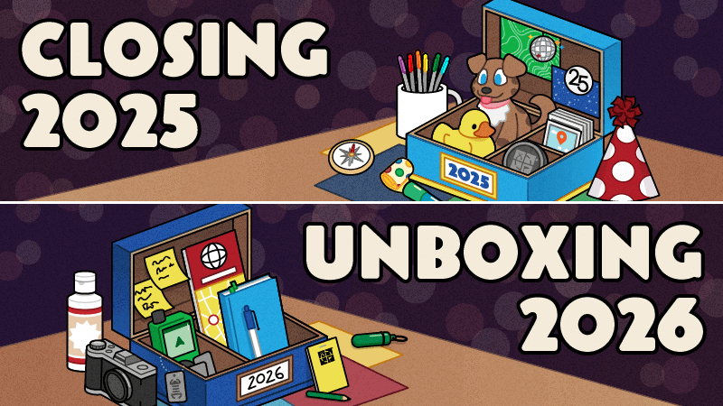 Geocaching.com julkaisi myös kaksi uutta souveniria, jotka liittyvät vuoden 2025 päättämiseen ja vuoden 2026 aloitukseen. Nämä ovat osa geokätköilyn 25-vuotisjuhlavuoden loppuhuipennusta.